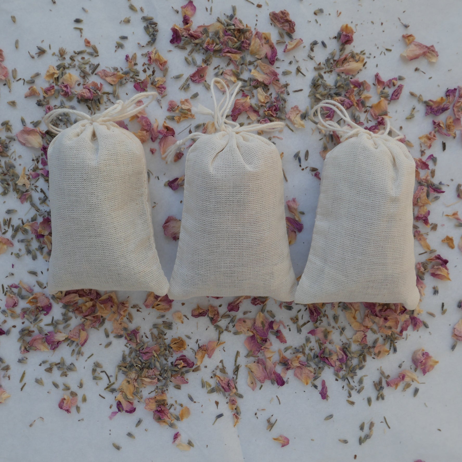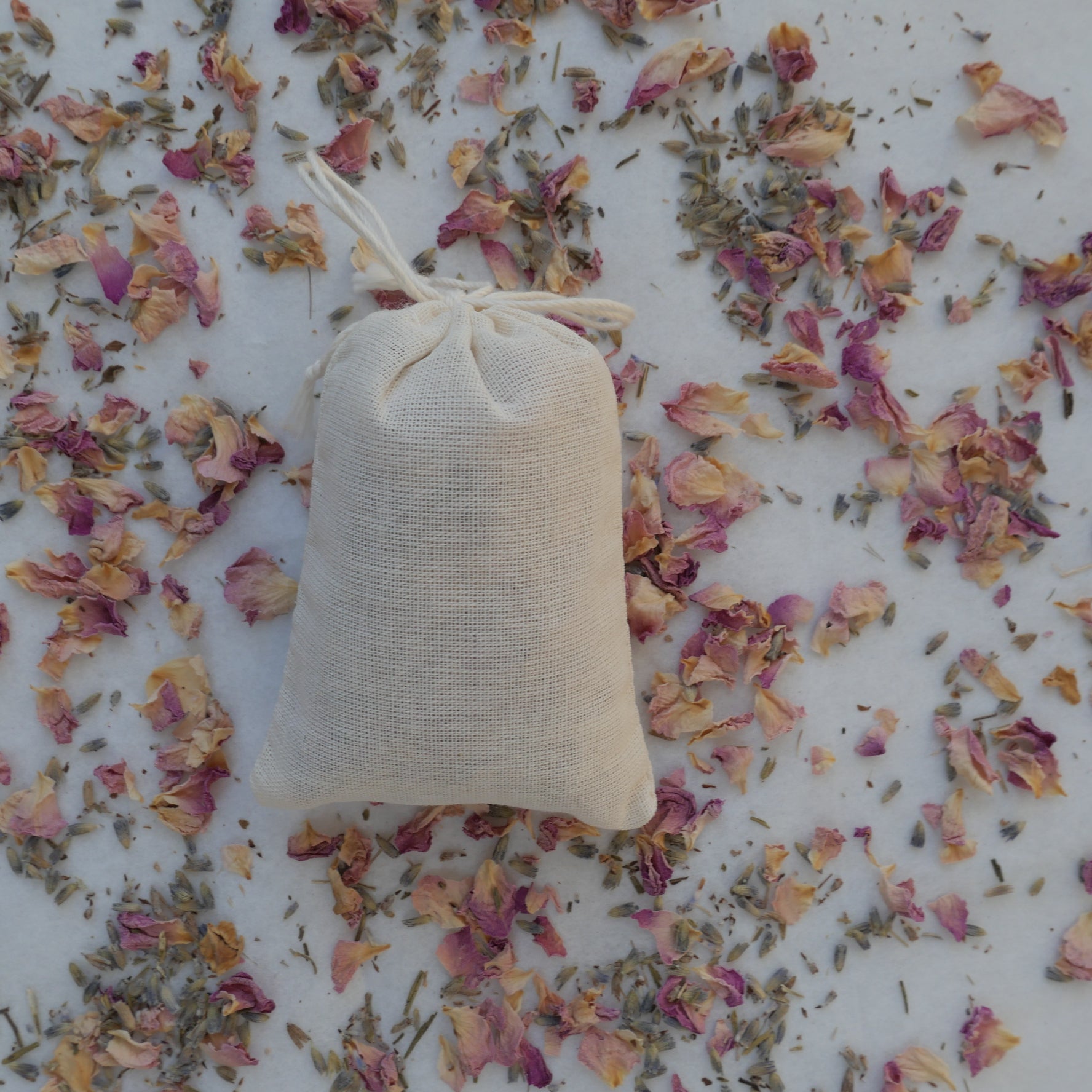 Small-batch handcrafted sachet filled with pure Organic English Lavender and Organic Pink Damask Rose Petals. Naturally calming floral aroma with soft, delicate floral notes. Perfect for drawers, closets, or small spaces - gently squeeze to refresh the scent.